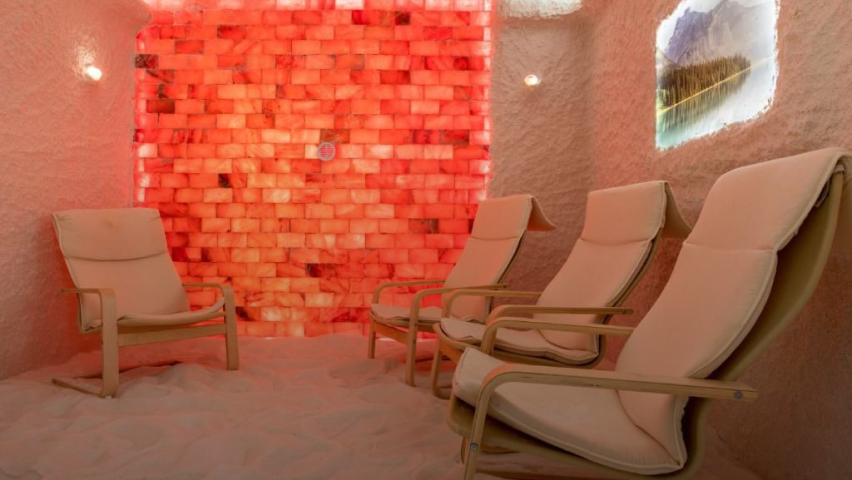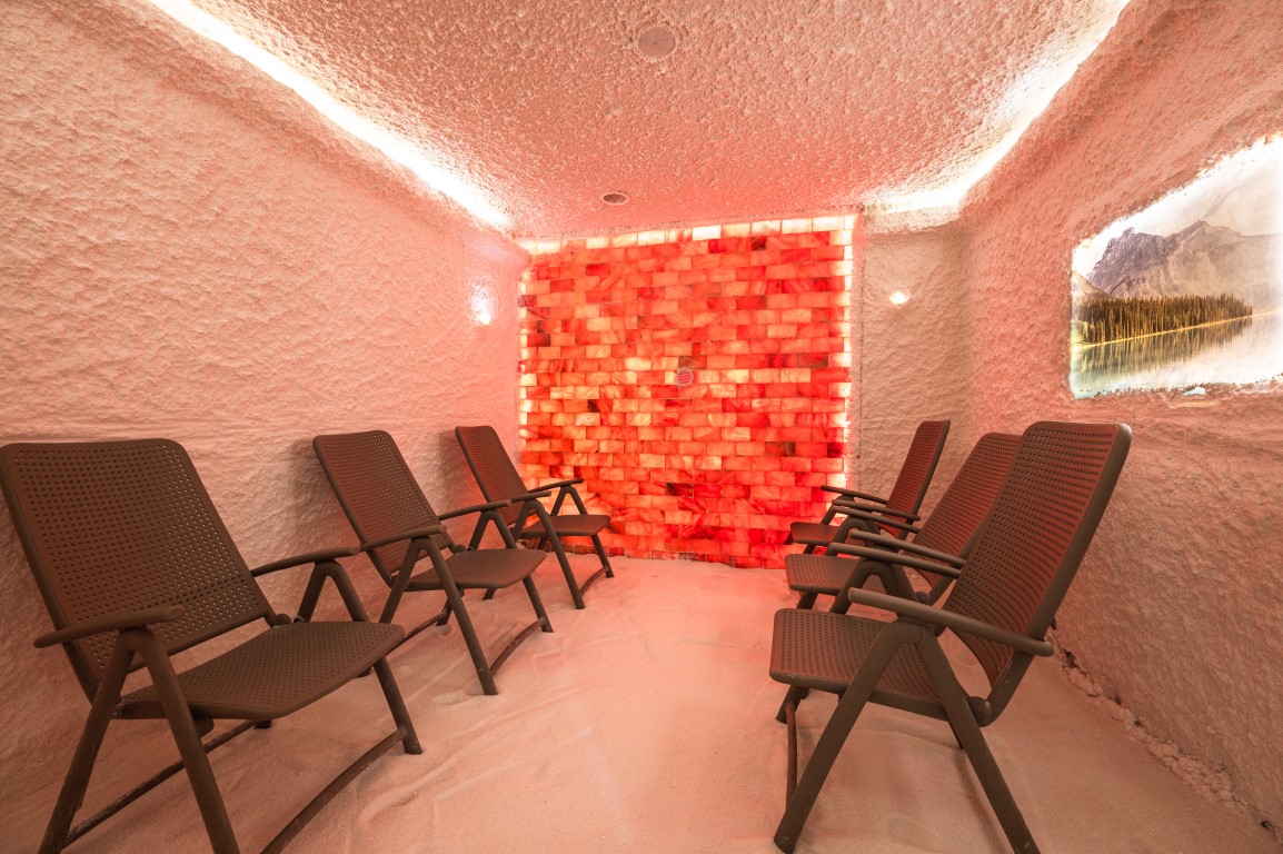 Халотерапията (сол терапията) влияе върху различни заболявания –подобряване на имунитета и повишаване тонус на тялото,всички респираторни заболявания на дихателните пътища, различни кожни заболявания, нервна система, подобрява съня.  В солната стая се разпрашават финни частици 2- 3 мкр. специална фармацефтична сол със съдържание 99,95% NaCl. Тези малки частици чиста сол лесно се инхалират и aбсорбират през кожата. Един сеанс в солната стая (40мин) се равнява на 4 часа разходка в боровата гора. Няма възрастови ограничения, абсолютно безопасна е и се съчетава с други физиотерапевтични и немедикаментозни методи.